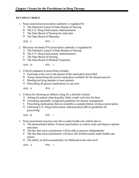 Test Bank Pharmacotherapeutics for Advanced Practice: A Practical Approach 5th Edition