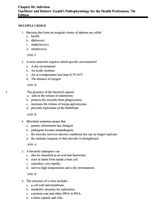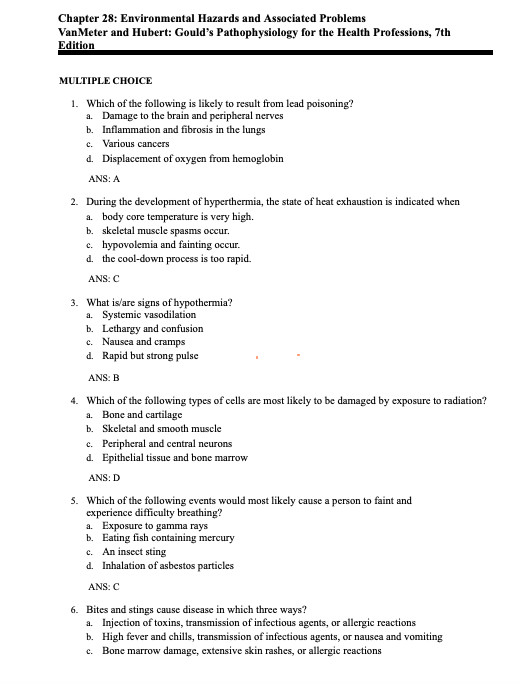 Test Bank Gould's Pathophysiology for the Health Professions 7th Edition by VanMeter