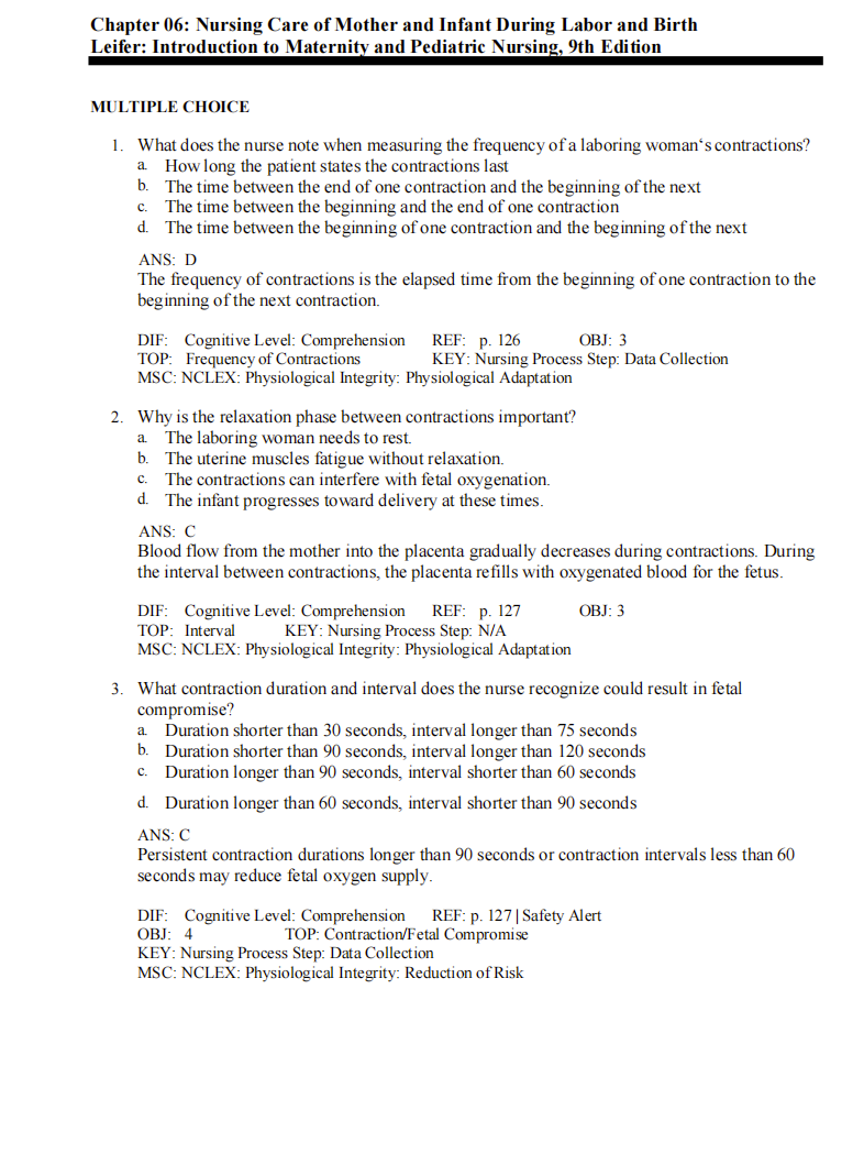 This test bank is developed to accompany the 9th edition of Introduction to Maternity and Pediatric Nursing. It provides a broad set of practice questions that help students build a strong foundation in both maternal and pediatric nursing care.