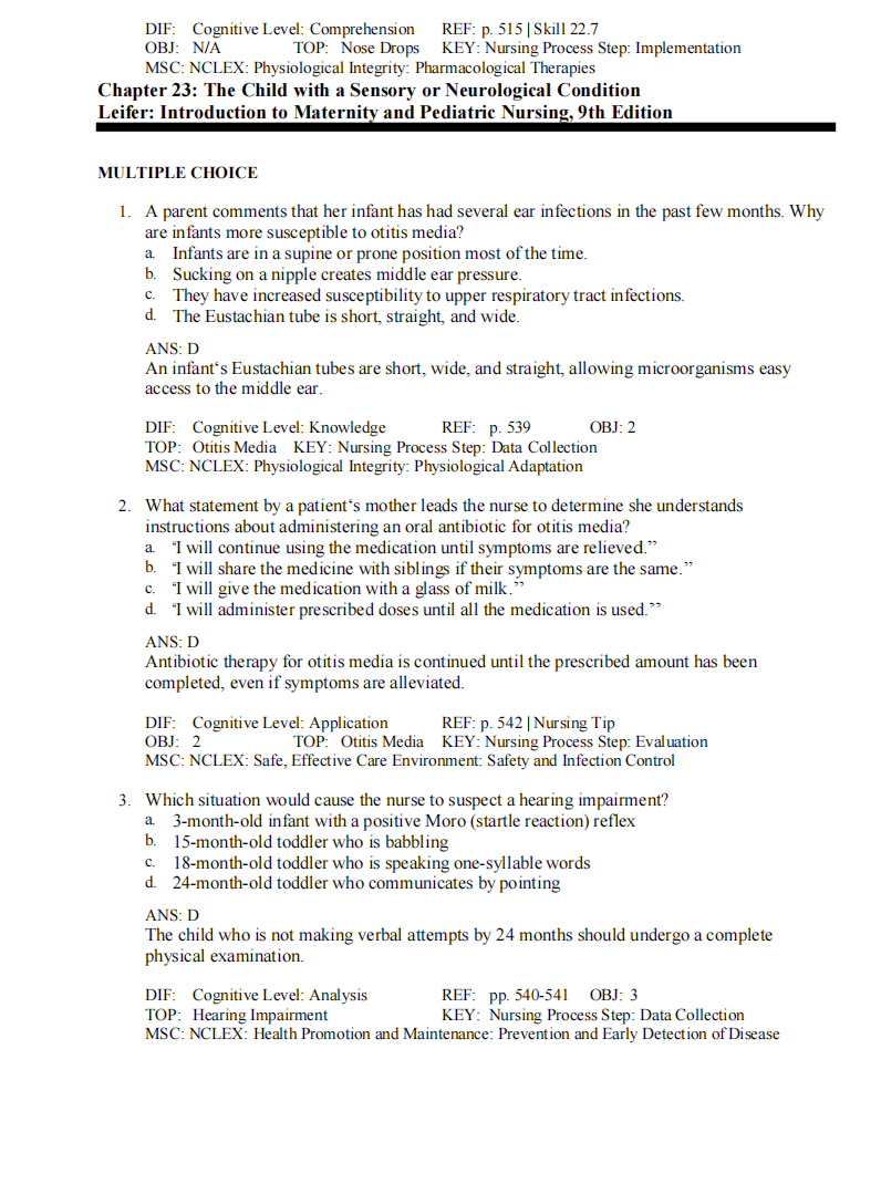 Test Bank Introduction to Maternity and Pediatric Nursing 9th Edition