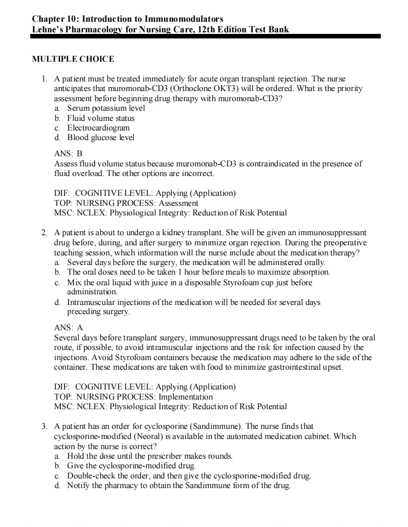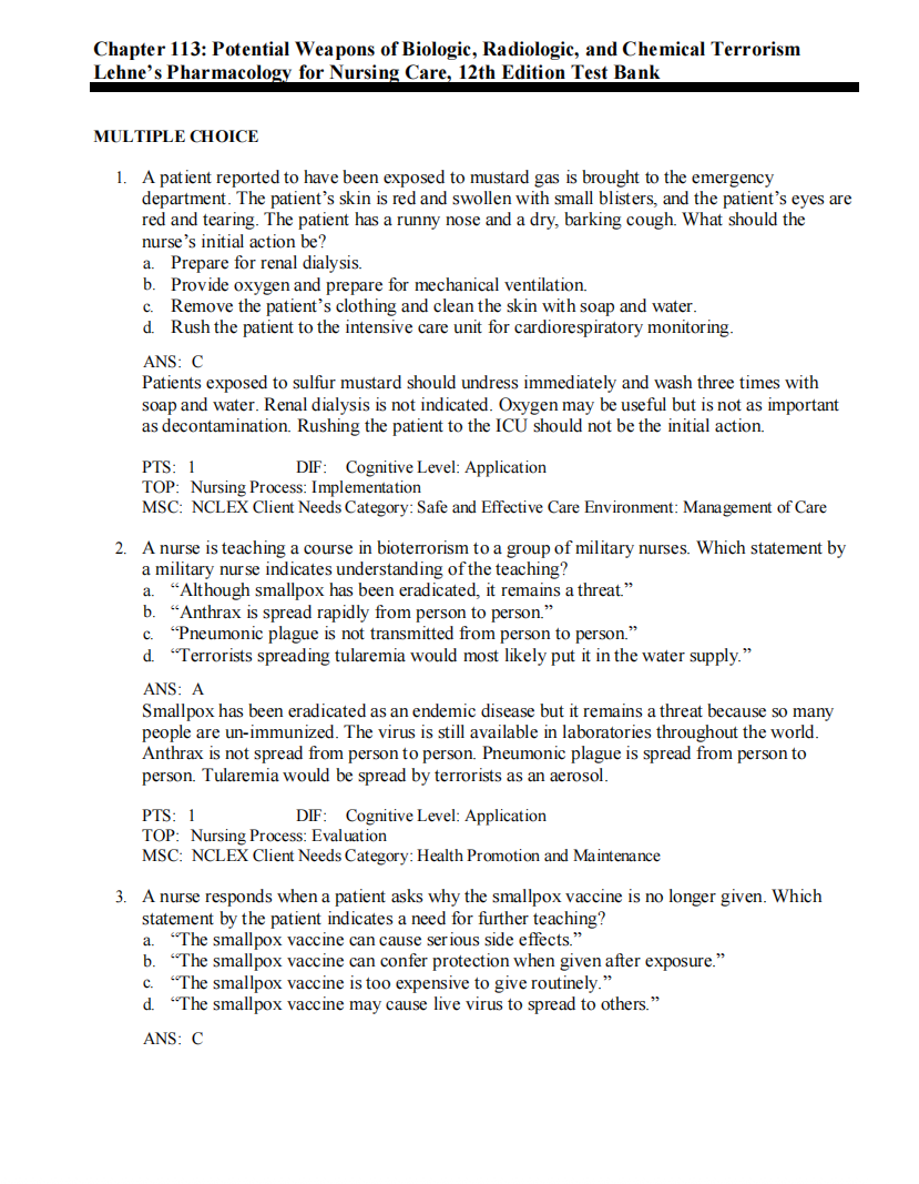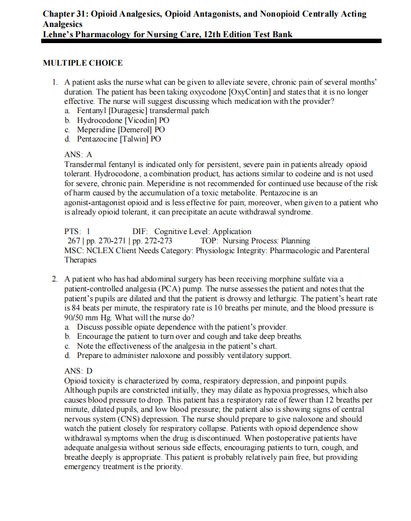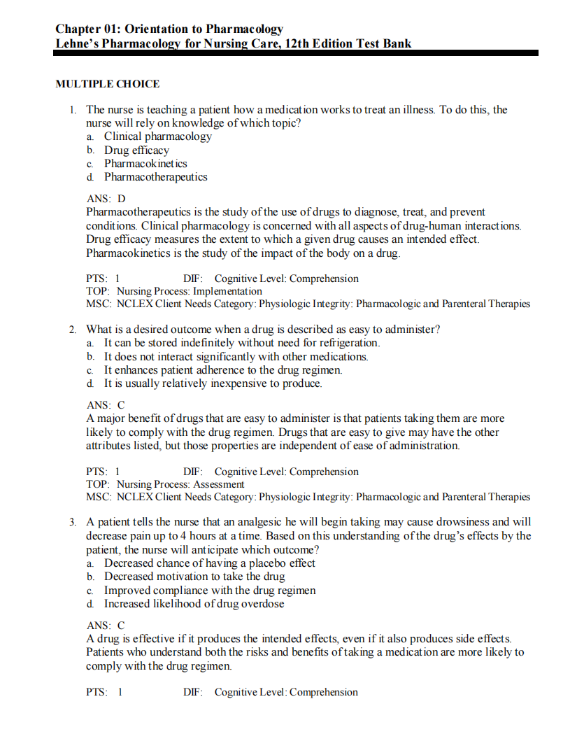 Test Bank Lehne’s Pharmacology for Nursing Care 12th Edition